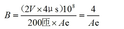 現在我們來看磁芯,假定二管是一般的一般的二管,通態電壓大約為1V,電流為10A/200=50mA。互感器輸出電壓為1V,加上二管的通態電壓1V,總電壓大約2V。250kHz頻率作業時,磁芯上的磁感應強度不會跨越