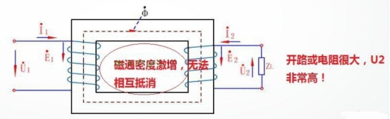 磁通密度突變,二次電壓很高電流互感器二次開路的成果