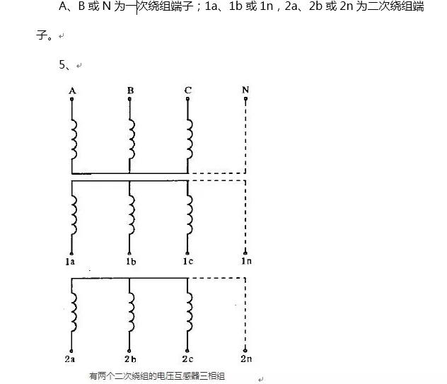 電壓互感器端子標(biāo)明大寫字母A、B、C和N標(biāo)明一次繞組端子,而小寫字母a、b、c和n則標(biāo)明相應(yīng)的二次繞組端子。