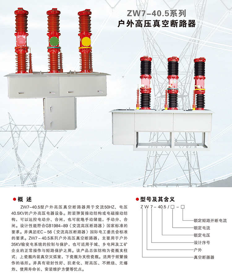 當前位置:主頁 > 產品展示 > 戶外真空斷路器 > ZW7A-40.5戶外高壓真空斷路器
